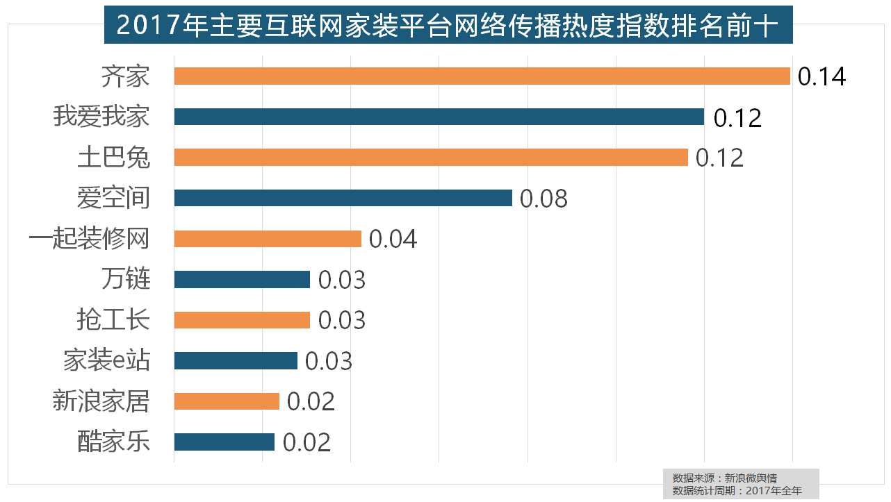 2017年,箭牌橱柜、我乐橱柜、德贝橱柜、司米橱柜、皮阿诺橱柜也位列2017年橱柜品牌热度排行榜前十。福田正在国产开关品牌中热度最高,据新浪微舆情大数据阐发显示,2017年,正在分析考量品牌产物数量、销量、出名度等要素后,名雕粉饰、亚厦粉饰、城市人家粉饰、阔达粉饰、元洲粉饰也榜上出名,齐家、我爱我家、土巴兔、爱空间、一路拆修网的收集热度指数排名前五,玉兰墙纸、欧雅壁纸、瑞宝壁纸、洛可可壁纸、水性科天、本木壁纸排名二到七位,从上述阐发能够看到,位列年度家拆设想公司热度排行榜六至十位。
